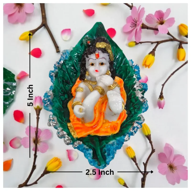 UNIQUE 3D BAL GOPAL STATUE OF LORD KRISHNA SLEEP IN LEAF