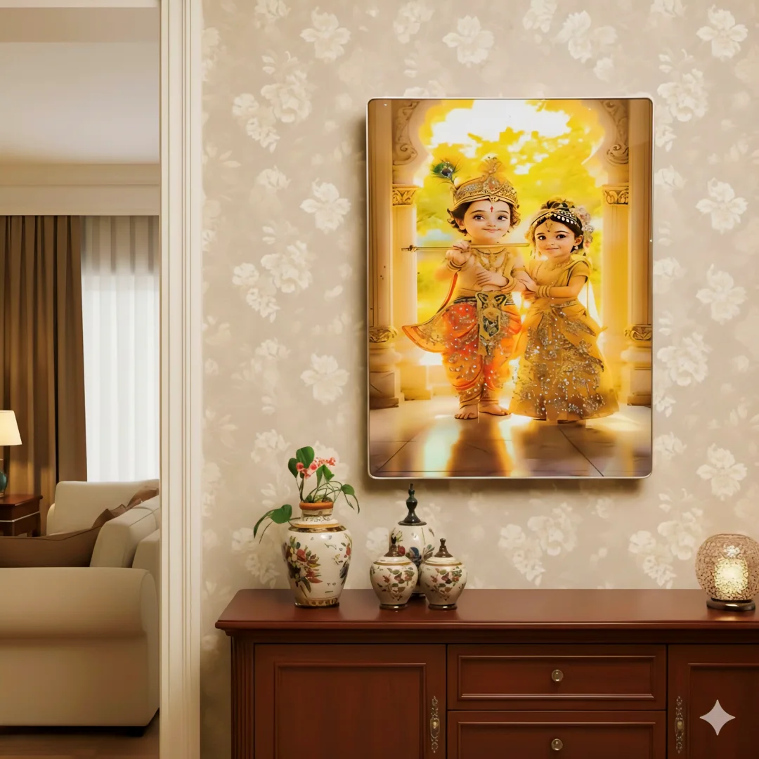 Bring home this Bal Radha Krishna Glass Finish Statue and fill your surroundings with spiritual energy, love, and divine blessings.
