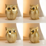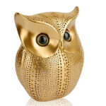 Add a touch of whimsy and elegance to your home décor with this charming golden owl figurine. Crafted with meticulous attention to detail, this decorative piece features intricate textured patterns across its body, creating a stunning visual effect. The owl’s large, expressive black eyes and distinctive facial features capture the wise and watchful nature of these magnificent creatures. The metallic gold finish adds a luxurious gleam that catches light beautifully, making it a striking accent piece for any room. Perfect for shelves, side tables, or as a centrepiece, this owl statue sits gracefully on its base, ready to watch over your space. The combination of modern styling with classical owl symbolism makes it an ideal gift for both art enthusiasts and nature lovers. Display it alone as a statement piece or pair it with other metallic décor elements to create a cohesive design theme in your living space.