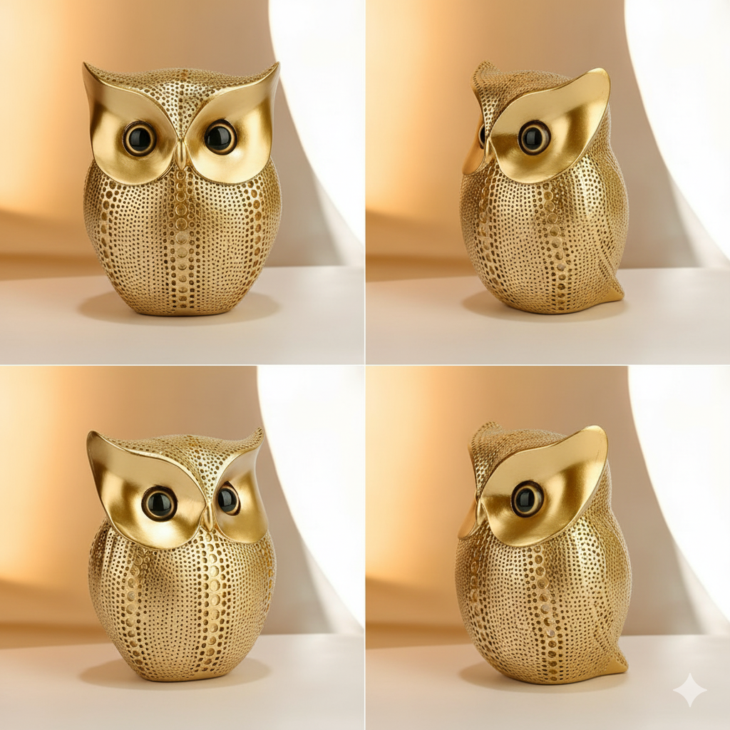 Decorative Gold Owl Figurine, Sculpture with Textured Pattern, Modern Home Decor, Table Ornament.