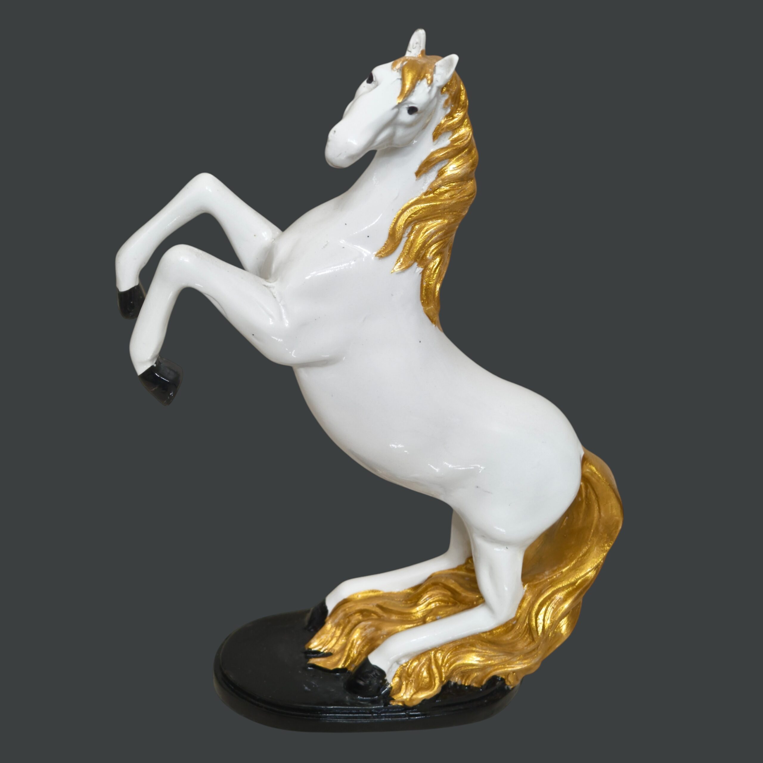 Decorative Horse Figurine, White with Golden Mane, Tabletop Sculpture.