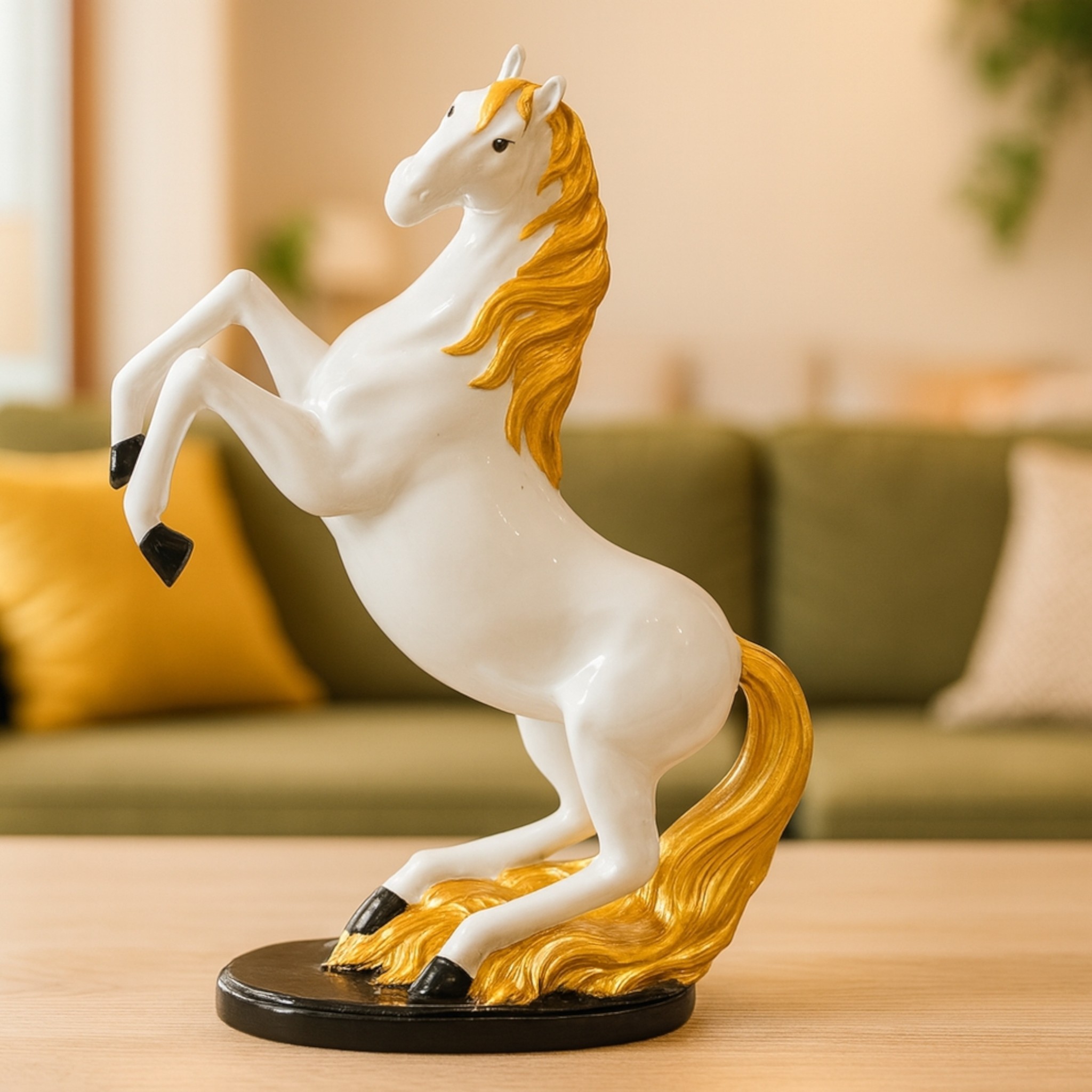 ELEGANT DESIGN: Stunning white horse figurine in a dynamic rearing pose with flowing golden mane and tail, perfect for adding a touch of grace to any home or office décor.