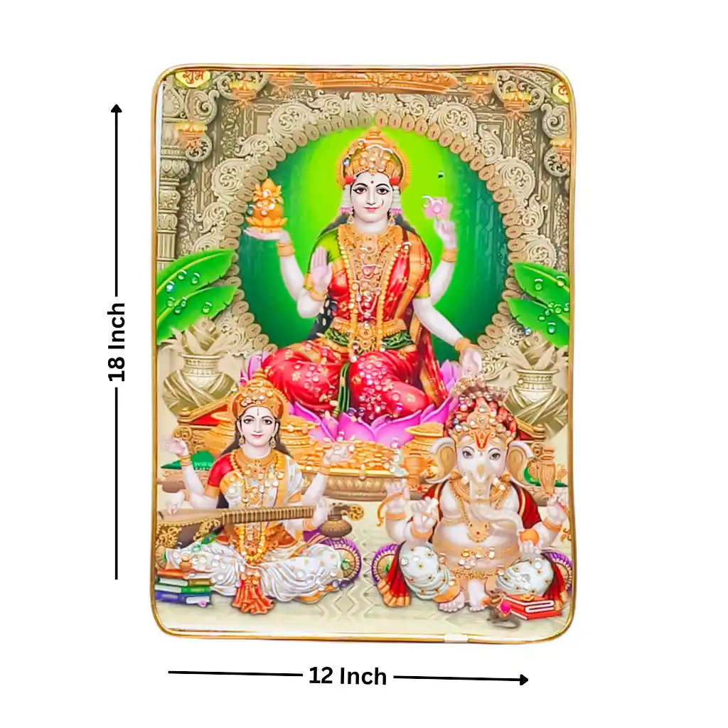 LAXMI GANESH PHOTO FRAME WITH GLASS CRYSTAL FINISH