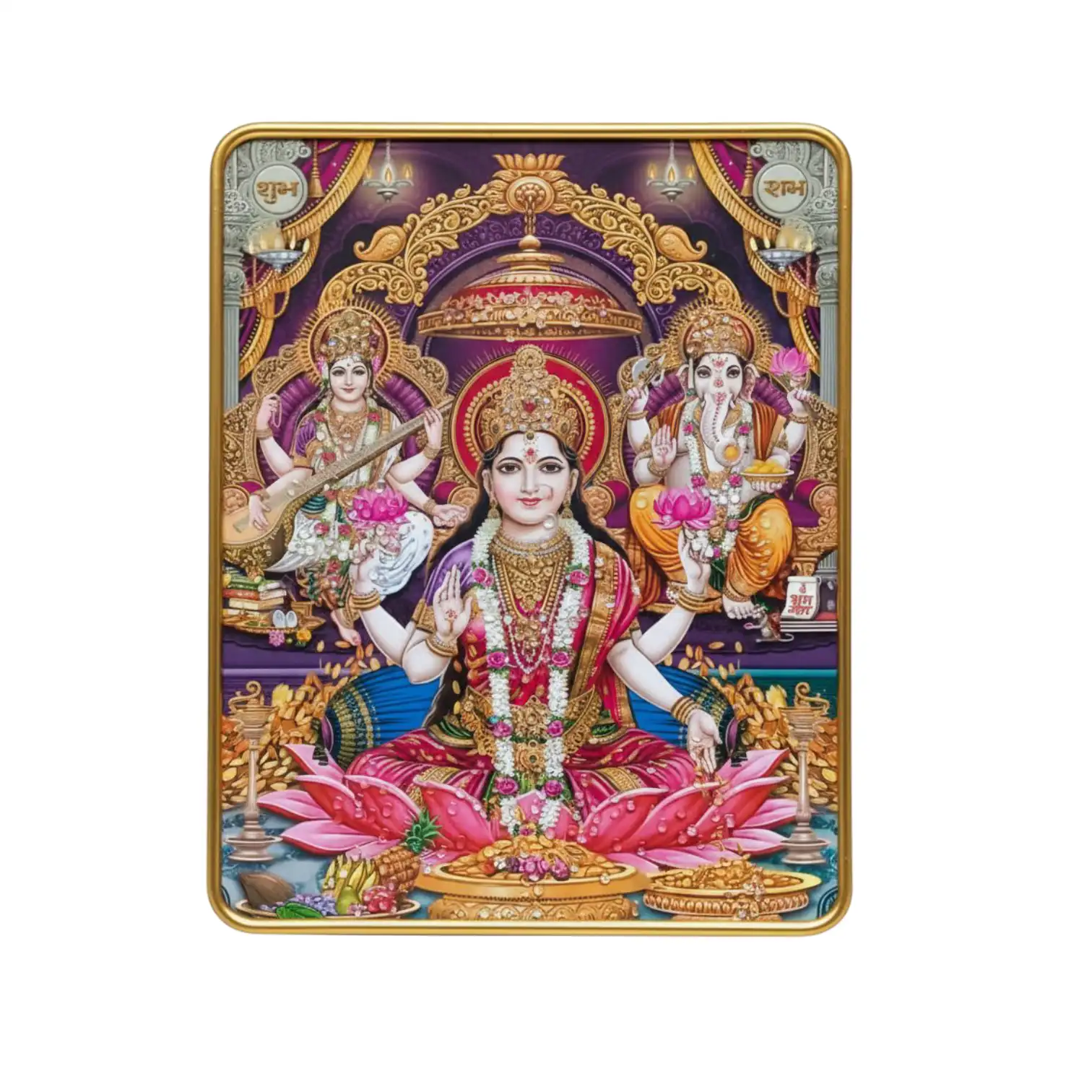 LAXMI GENESH AND SARASWATI MATA PHOTO FRAME WITH GLASS AND CRYSTAL FINISH