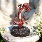 This exquisite handcrafted glass figurine brings spiritual elegance to any space with its stunning depiction of the sacred Om symbol paired with the powerful Trishul. Rendered in captivating shades of red and pink, this decorative piece showcases exceptional artistry and attention to detail. The figurine features the iconic Om symbol rising gracefully above a beautifully crafted Trishul, all mounted on an artistic base that adds depth and dimension to the piece. The rich colour palette creates a mesmerising visual effect, with the translucent glass catching and reflecting light in enchanting ways. This spiritual Hindu-themed statue serves as a meaningful addition to your home temple, meditation space, or living area, creating an atmosphere of devotion and tranquillity. The intricate craftsmanship is evident in every curve and contour, making each piece unique. Whether you’re looking to enhance your personal prayer space or searching for a thoughtful gift for someone who appreciates spiritual décor, this glass figurine offers both aesthetic beauty and symbolic significance. Display it prominently to invite positive energy and divine blessings into your surroundings.